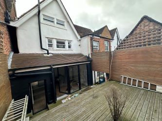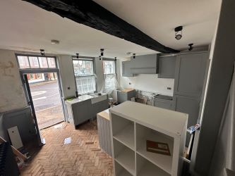 A three bedroom terraced house for sale, comprising an unfinished renovation arranged over three floors.