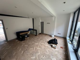 A Three bedroom terraced house for sale, comprising an unfinished renovation arranged over three floors.