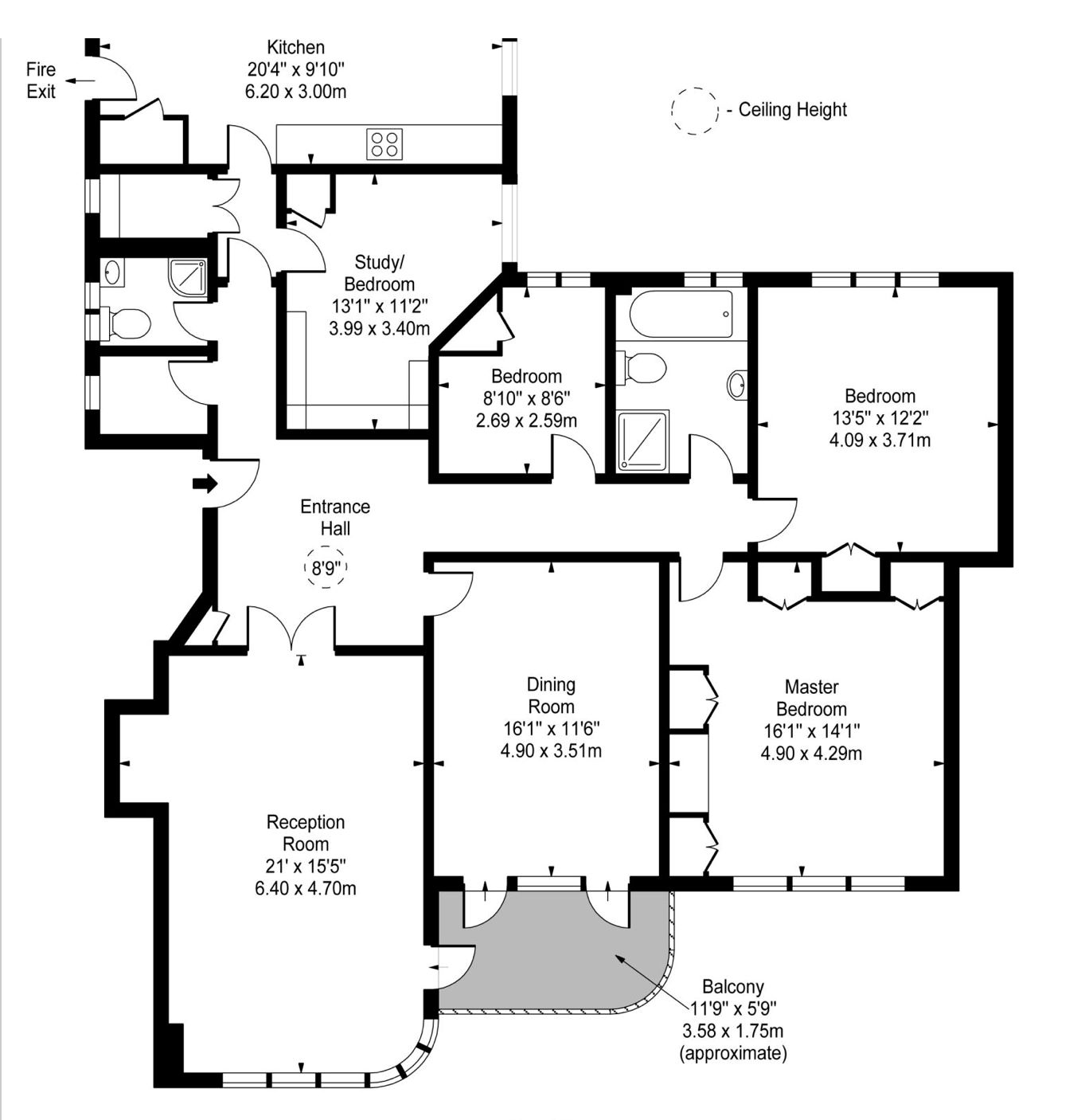 A spacious Penthouse apartment in an iconic art deco building with a private balcony and parking